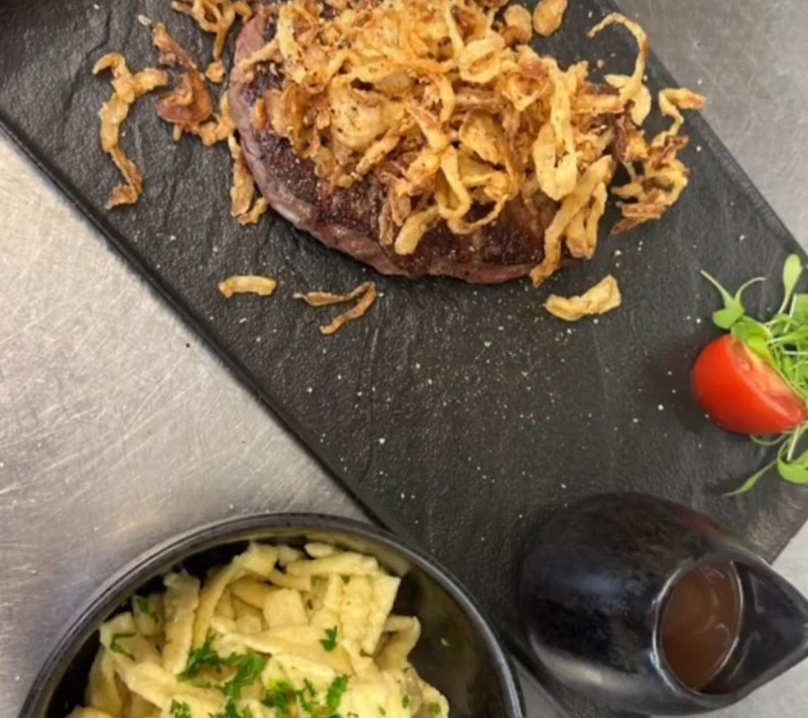 „Das Restaurant ist einfach hervorragend. Gut bürgerliche Küche auf hohem Niveau. Den Zwiebelrostbraten kann ich sehr empfehlen. Das Personal ist erste Klasse. Ein Besuch lohnt sich auf jeden Fall.”